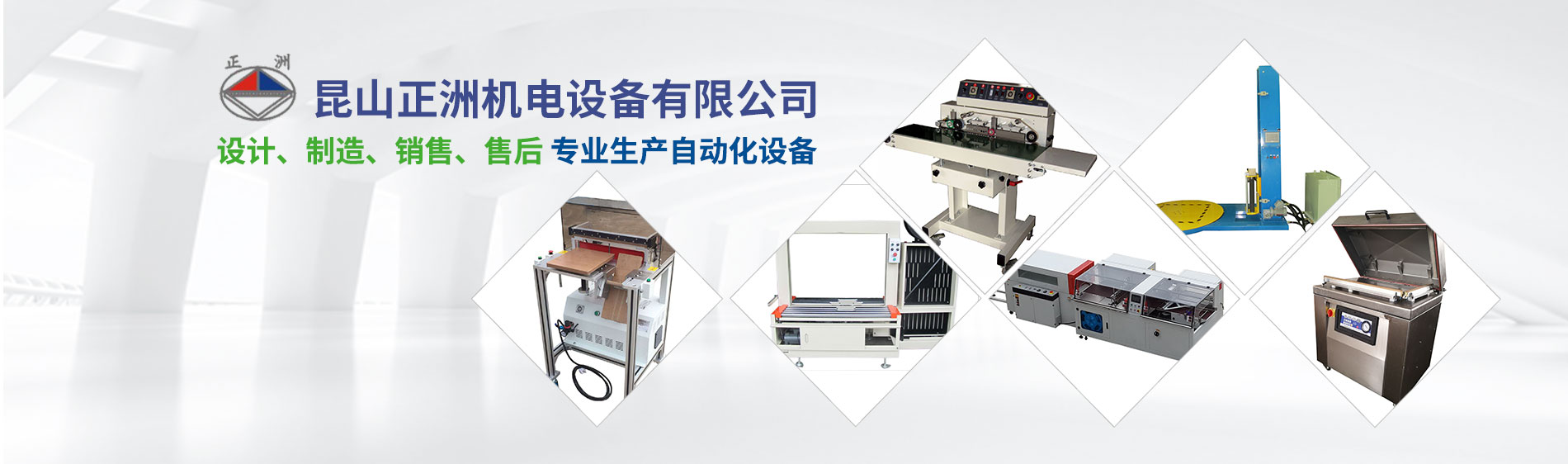 昆山正洲機(jī)電設(shè)備有限公司14年以來,堅持設(shè)計、制造、銷售、售后服務(wù)一條龍服務(wù)。生產(chǎn)經(jīng)營范圍迅速擴(kuò)大,形成以下產(chǎn)品系列: 自動封箱系列;自動打帶系列;自動封口熱收縮系列;棧板自動包裝系列;抽真空包裝系列;省力真空搬運(yùn)系列;流水線輸送系列;自動貼標(biāo)/套標(biāo)系列;熱熔膠自動噴膠/貼合系統(tǒng);進(jìn)口手動打包工具系列;平面式裹包系列;自動倉儲系列;塑膠蓋自動封蓋系列等各種產(chǎn)品的無人化包裝系統(tǒng)的設(shè)計與制造。 公元1981年春,在莊志斌先生的帶領(lǐng)下,于桃園成立了一家專業(yè)生產(chǎn)自動化設(shè)備的工廠。主要生產(chǎn)后段包裝機(jī)械及PP打包帶,經(jīng)過20多年的苦心經(jīng)營已頗具規(guī)模,客戶達(dá)到3000多家。于2001年在廣東成立(東莞)工廠;2002年在江蘇成立昆山正洲機(jī)電設(shè)備有限公司(總部)。